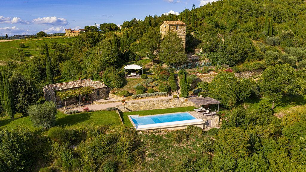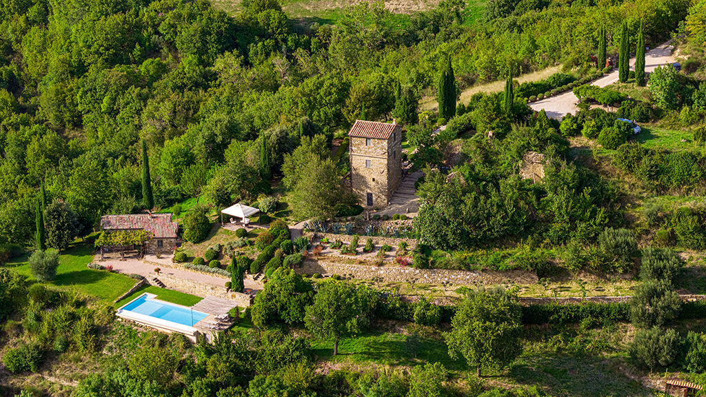 Die einzigartige Ferienvilla für 6 Personen liegt wundervoll in der Region Umbriens. Das Anwesen ist in zwei Häuser unterteilt. Das Haupthaus ist ein alter Wachturm aus dem Jahr 1400, der von seiner dominanten Position aus das ganze Tal überblickt. Die Villa Torre liegt in der Nähe von Pierantonio, einem Teil des Bezirks Perugia. Vom umgebauten Wachturm genießt man eine einmalige Aussicht über die umliegenden grünen Täler und Hügel Umbriens. Von hier aus können Sie auch das berühmte Schloss Antognolla mit seinem ausgezeichneten Golfplatz sehen.