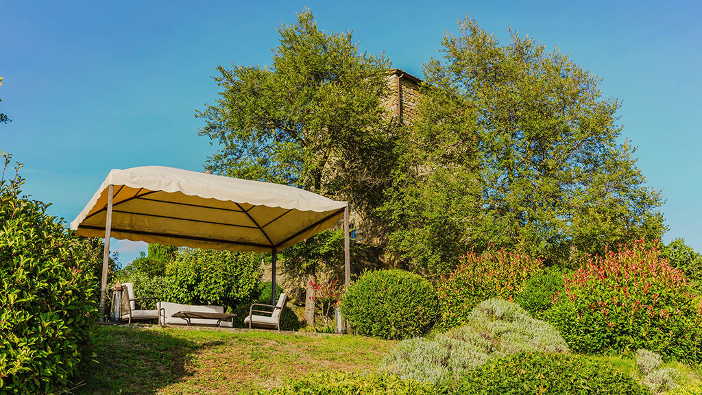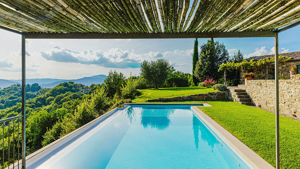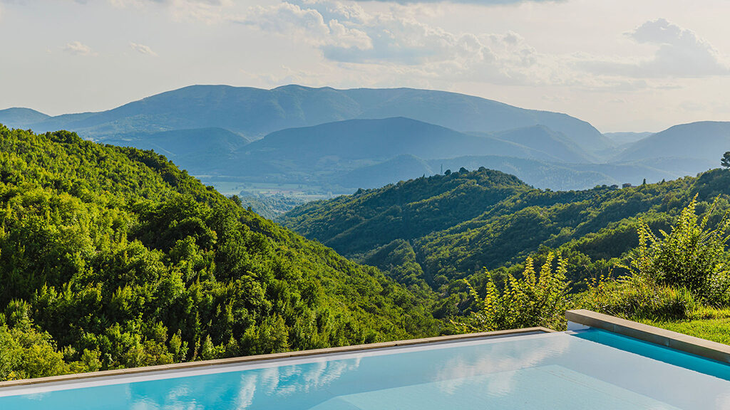 Diese Ferienvilla bietet eine hervorragende Aussicht, absolute Privatsphäre, gesunde frische Luft, einen privaten Pool und eine geschmackvolle Innenausstattung, die in Umbrien so einzigartig sind. Der Infinity-Pool ist 4 mal 10 Meter groß und hat an einer Seite eine Pergola für den nötigen Schatten an heißen Sommertagen. Das Grundstück ist weitläufig aber nicht ausbruchsicher eingezäunt.